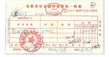 公司對(duì)老年協(xié)會(huì)的捐助3000元,蜀源村8000元